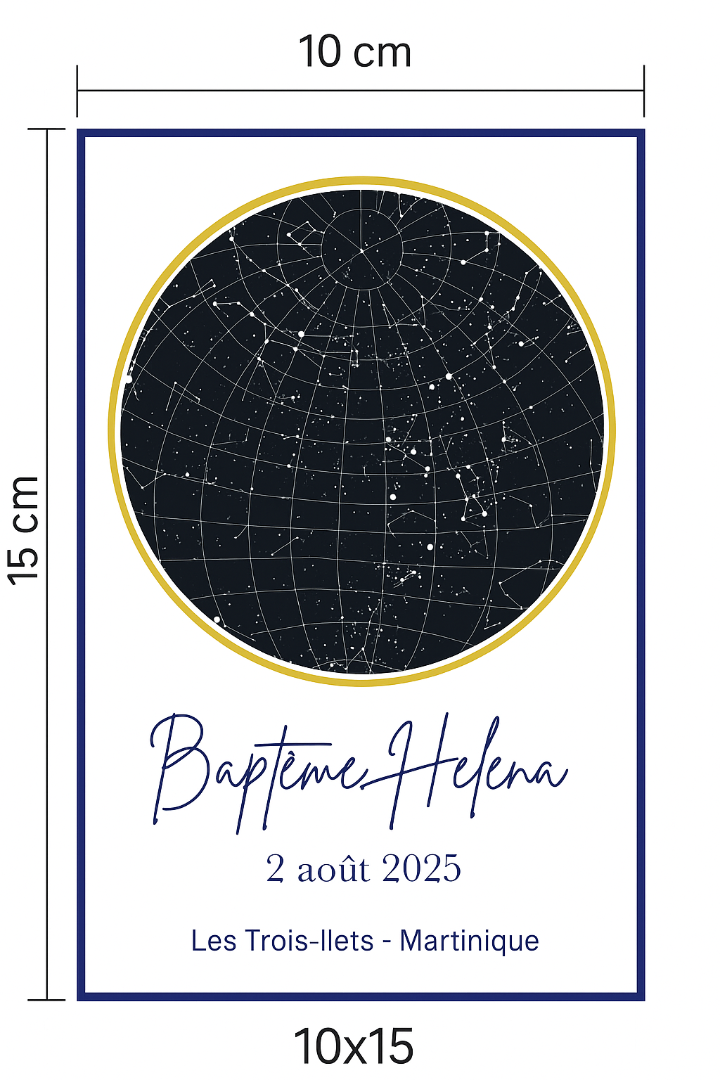 Chaque affiche représente fidèlement la position des étoiles, des planètes et des constellations à une date et un lieu choisis par vous. Mariage, naissance, rencontre inoubliable… Immortalisez ces instants magiques avec une œuvre céleste conçue spécialement pour vous.