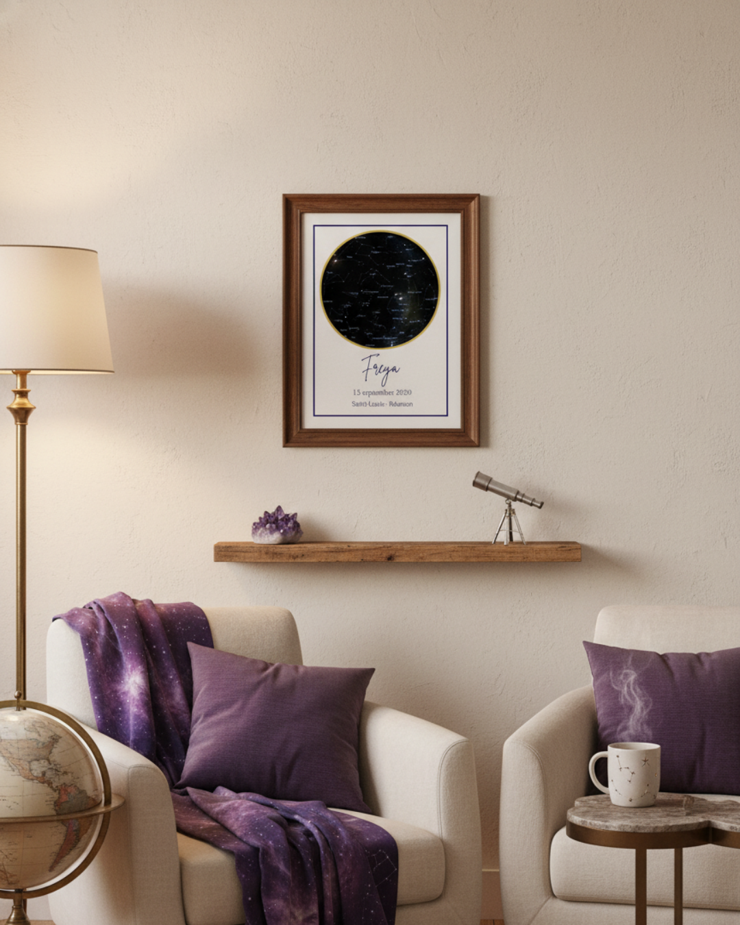 Avec l’affiche de la Collection Astralis, vous découvrez le ciel exactement comme il était à l’instant de votre événement : la position des étoiles, la Voie lactée, les constellations… tout est authentique et calculé à partir de données astronomiques réelles.